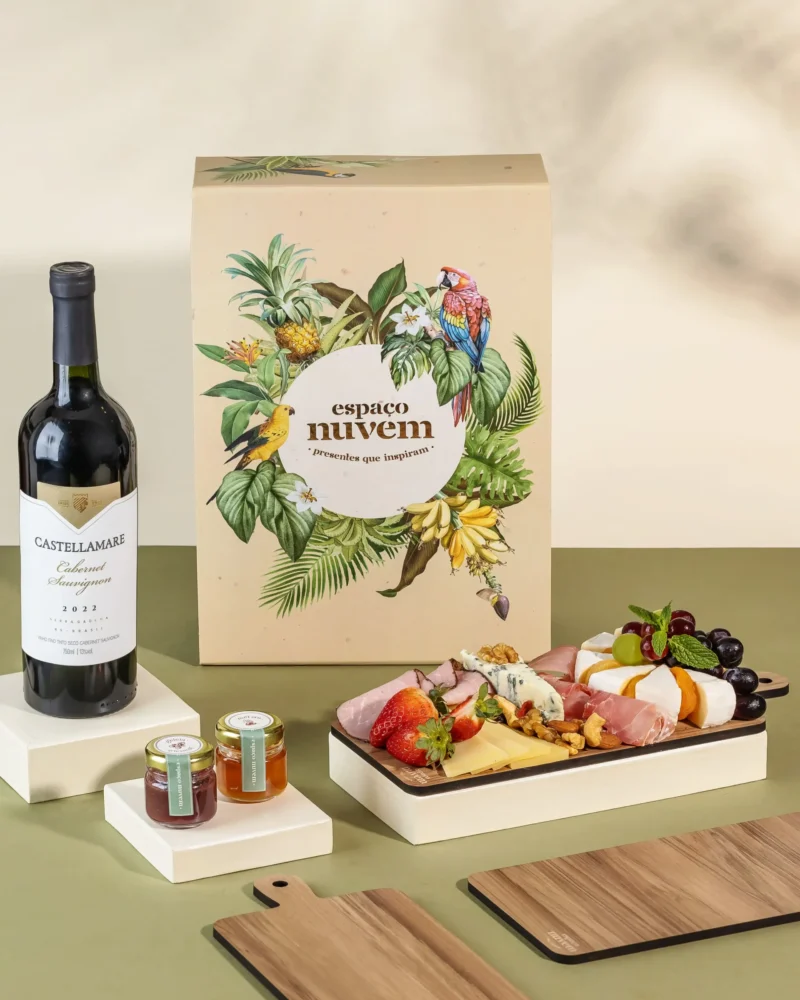 A Cesta de Queijos e Vinho Aurora Boreal é montada dentro da nossa caixa de presente com design exclusivo e com produtos de alta qualidade e sem conservantes, trazendo o melhor dos pequenos produtores locais para a sua mesa.